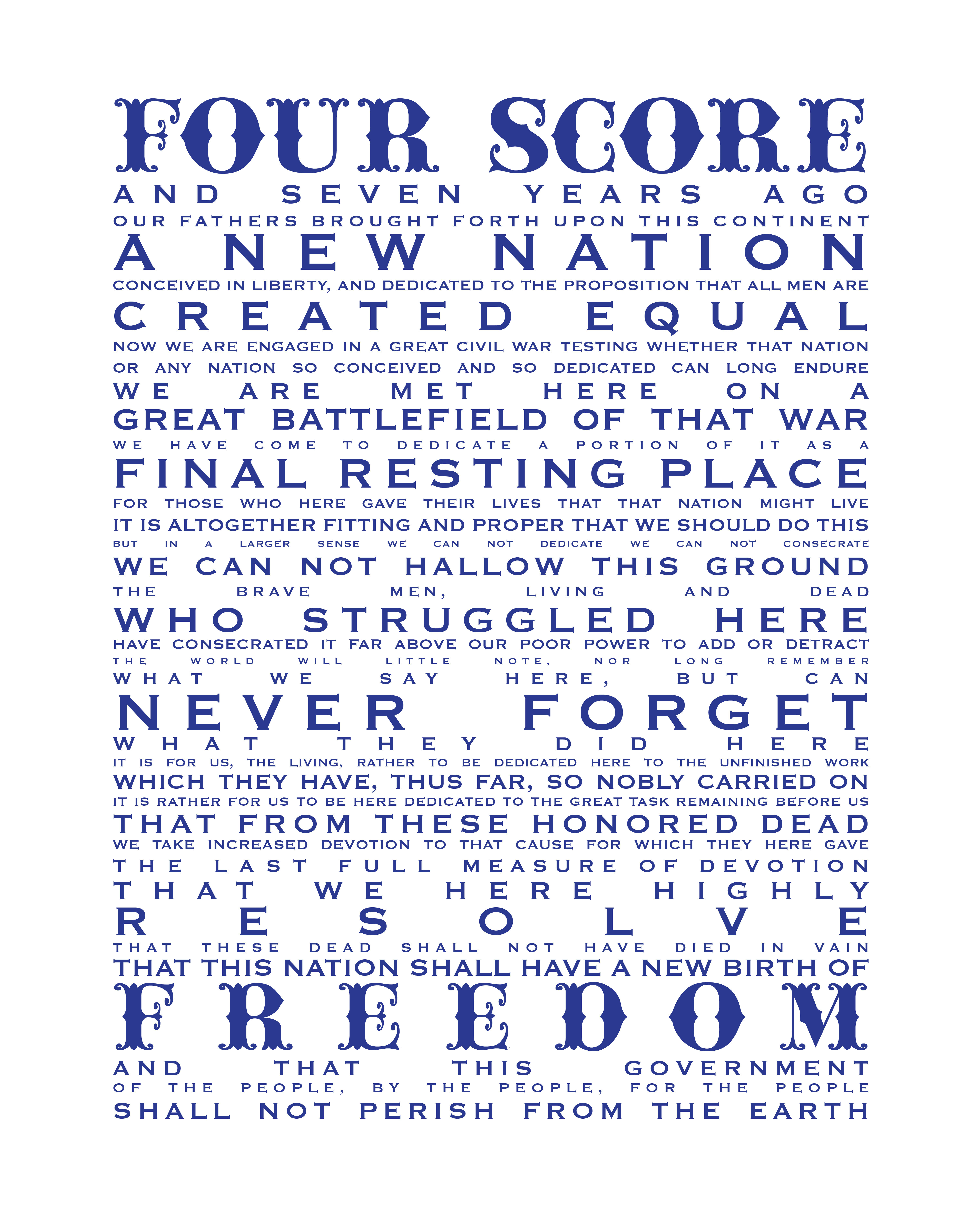 “Four score and seven years ago our fathers brought forth on this continent a new nation, conceived in liberty, and dedicated to the proposition that all men are created equal.